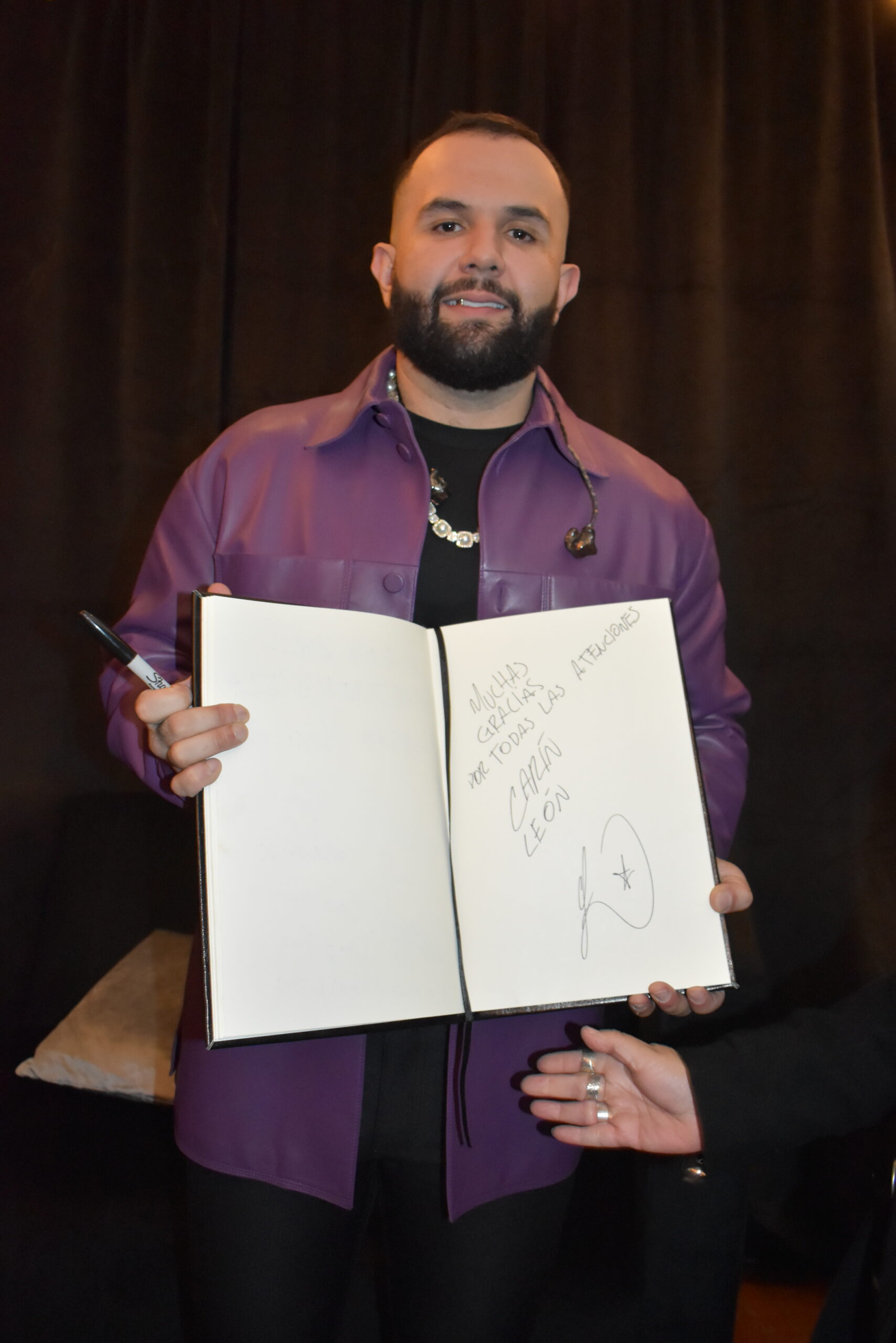 El artista sonorense firmó el libro de La México, como recuerdo de su primera presentación en el recinto con boletos agotados.
